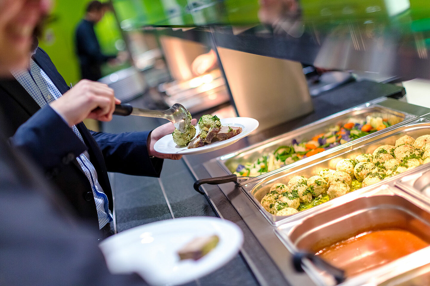Wir bieten von Montag bis Freitag, 11.30 bis 13.30 Uhr neben drei Hauptspeisen auch eine Suppe, Desserts und eine Salat- sowie Beilagentheke zur Selbstentnahme an. Bezahlen können Sie mit einer Guthabenkarte oder bar. Da wir unsere Gerichte frisch zubereiten, behalten wir uns Änderungen vor.