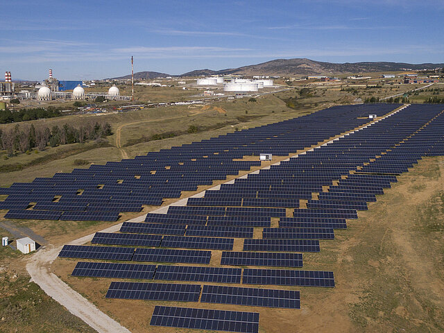 Dies ist eines der Vorzeigeprojekte von JUWI Hellas, da das Solarkraftwerk neben einer Ölraffinerie gebaut wird und die Projektentwicklung sehr strengen Gesundheits- und Sicherheitsvorschriften unterlag, die während der gesamten Bauphase eingehalten wurden.